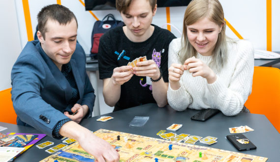 Вечер начался с «Игротеки», где все желающие сыграли как в фирменные игры ИЦАЭ, так и в классические кооперативные, стратегические и логические игры.
