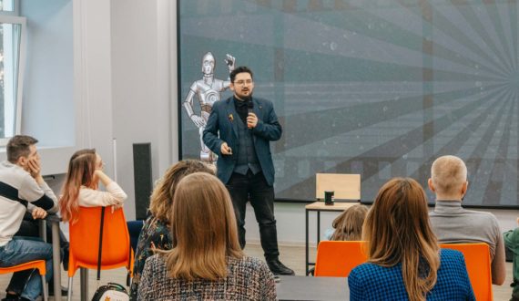 Главным событием вечера стало научно-популярное ток-шоу «Учёные PRO кино». Кандидат технических наук, доцент ИШНКБ ТПУ Андрей Коломейцев разобрал технологии, существующие во вселенной «Звёздных войн».