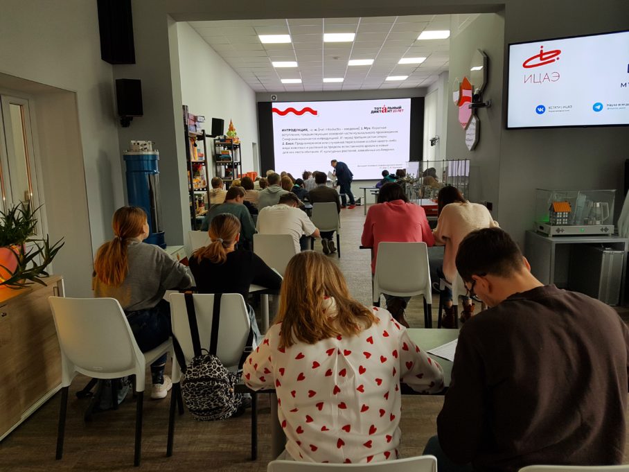 ИЦАЭ Калининграда уже не в первый раз становится партнером ежегодной просветительской акции «Тотальный диктант», которая объединяет всех, кто умеет или хочет грамотно писать и говорить по-русски. В этом году автором уникального текста диктанта стала писательница, журналистка, многократный финалист премии «Большая книга» Анна Матвеева. Диктующим на площадке ИЦАЭ выступил Алексей Черняков, кандидат филологических наук, доцент Балтийского федерального университета.