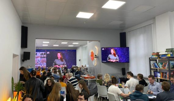 Поддерживало атмосферу то, что участники из разных городов общались между собой по видеосвязи. «Сама по себе интересная идея: турнир, идущий в течение года. Команды приходят и играют, одновременно много городов. Получается такое пространство, в котором охватывается вся Россия и Беларусь. Люди сидят в разных городах и общаются друг с другом — гениальная затея. Эта игра — всегда азарт, возможность интеллектуально и весело провести время. Люди играют не просто ради победы. Расширяется кругозор, по ходу узнаёшь много нового. Вопросы сегодня были очень интересные, мне понравилось. Всё чётко и красиво организовано», — рассказала Ирина Молочкова, зритель игры в Челябинске.