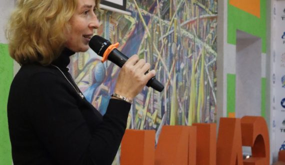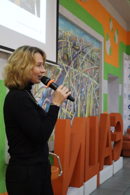 Собственным опытом переводческой деятельности в «синхроне» поделилась со слушателями Татьяна Фурменкова, синхронный переводчик, к.ф.н. и доцент Института гуманитарных наук БФУ им. И. Канта.