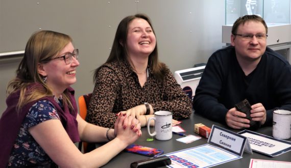 В Мурманске среди 8 команд лучшими снова стали «Поморы» с довольно высоким результатом 48 баллов. «Игра нам зашла, потому что вопросы были прямо наши. Нам всегда у вас очень нравится, это такое совмещение научных, культурных и развлекательных тематик. И вопросы не попсовые! Мы оооочень любим к вам ходить!» — поедлились впечатлениями участники команды и капитан Ирина Кучина.