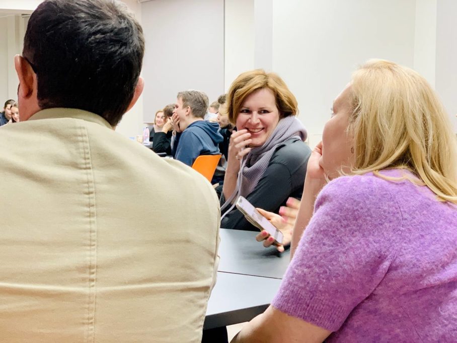 Вечер начался с мастер-класса «Что сделать, чтобы завоевать аудиторию». Что такое коммуникация и уважение в ней? Как заполучить внимание аудитории, одного конкретного человека и даже пустого пространства? Как работать со стрессом и скованностью? Об этом рассказала актриса, режиссёр, руководитель отдела спецпроектов Челябинского театра драмы имени Наума Орлова Алла Точилкина.