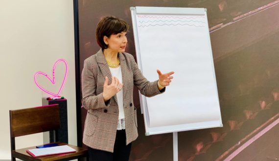 «Самое главное, что у человека есть, — это его словарный запас. Здравствуйте, добрый день, добрый вечер, утро, я вас приветствую и даже респект и хэй, – можно расписать вариантов, как поздороваться, на несколько страниц. Что делать, чтобы паузы мы могли заполнять чем-то кроме «э-э-э» и «короче»? Нужно читать книжки, а потом использовать разнообразные речевые обороты на практике, потому что только на практике можно полноценно усвоить и отработать материал», – рассказала Алла.