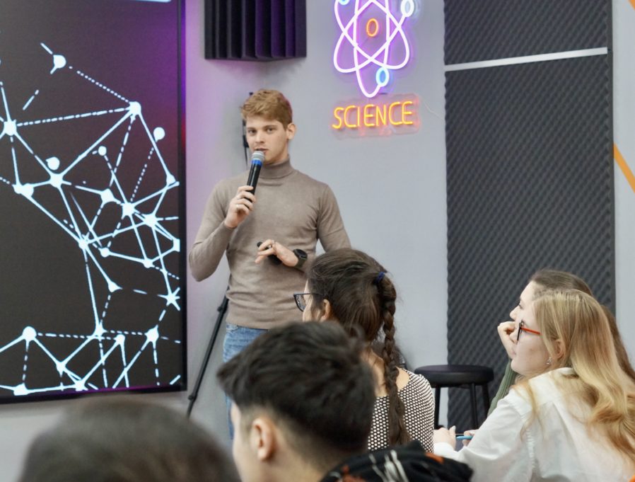 По традиции, перед началом мероприятия, всех посетителей центра ждала большая игротека настольных игр от сети Информационный центров по атомной энергии. А также можно было принять участие в «интеллектуальной разминке» – сыграть в «Адреналин: итоги 2023 года» и вспомнить, что важного произошло в сфере искусственного интеллекта и биотехнологий.