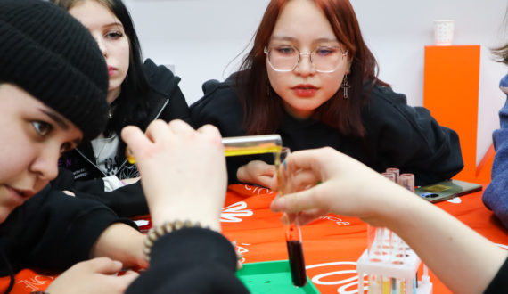 «Очень понравилось работать с пробирками: мы не делаем столько опытов на парах, а поэкспериментировать всегда очень хочется. Никогда не думала, что одно вещество в принципе может дать пять разных цветов в реакциях. Зато теперь точно отличу «берлинскую лазурь» от «турнбулевой сини» на глаз», — поделилась Юлия, будущий повар.