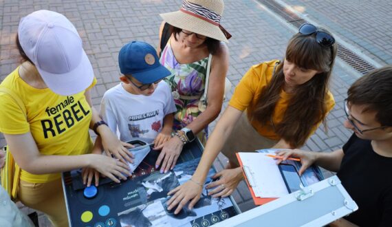 Вечер начался с квеста на бульваре Новый Венец. По легенде, участникам предстояло пройти экспедиционный маршрут, посвящённый освоению арктических широт. На станциях квеста нужно было прокладывать путь следования ледоколов во льдах, распознавать старинные названия морей, отсеивать научные факты от вымысла и дешифровывать сообщения с помощью семафорной азбуки.