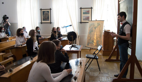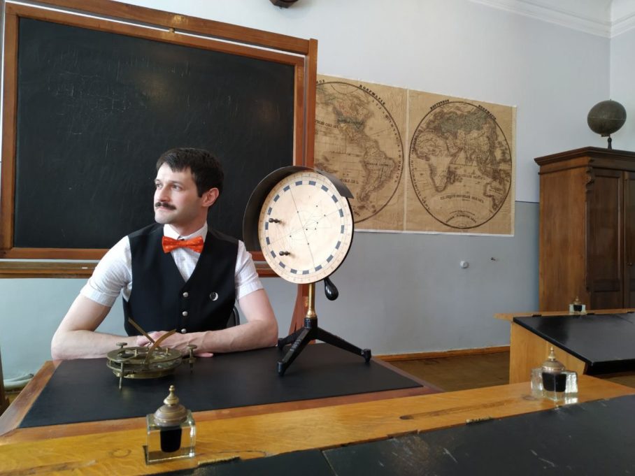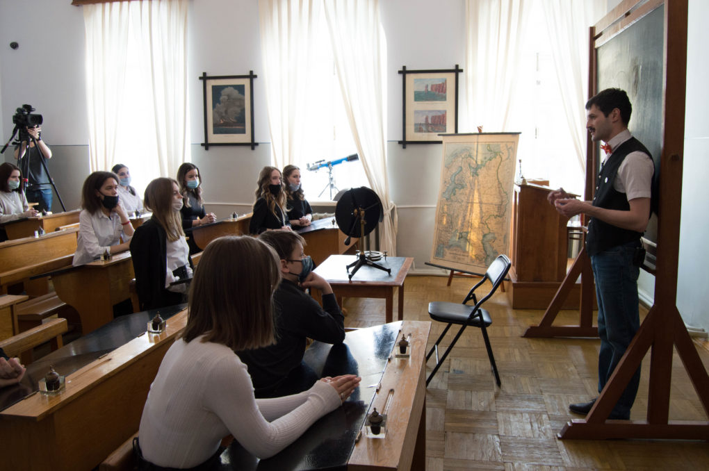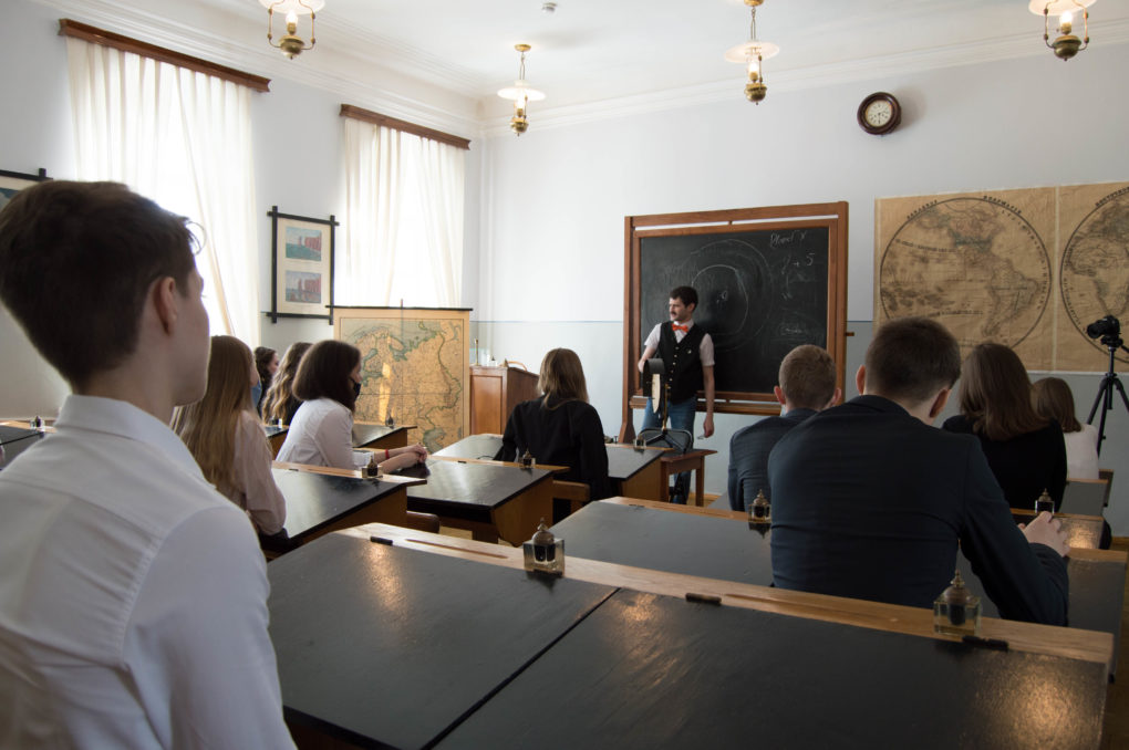 Утром в музее-заповеднике “Симбирской классической гимназии” Информационный центр по атомной энергии (ИЦАЭ) Ульяновска провёл реконструкцию урока девятнадцатого века по астрономии. Педагогом стал Дмитрий Эпштейн, ведущий математик Института теоретической и прикладной механики РАН, кандидат физико-математических наук, популяризатор астрономии и космонавтики.