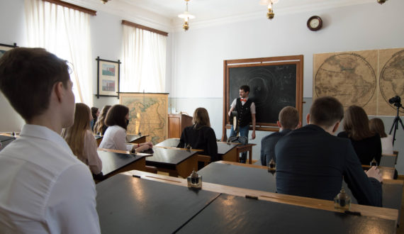 Программа второго дня в рамках фестиваля науки “Кстати” была необычная. “Машина времени” перенесла ульяновцев в атмосферу школы XIX века, а закончился день современным прочтением классического произведения.