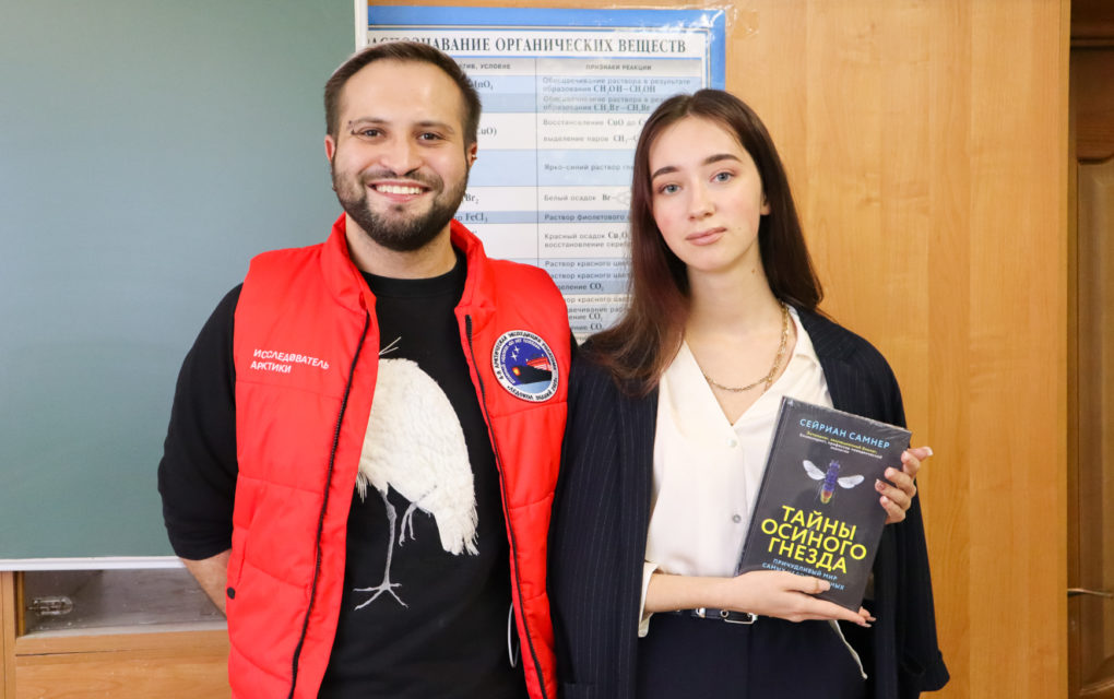 Следующую лекцию «На зависть Дюймовочке: удивительный мир насекомых» Илья прочитал для учеников гимназии №1 г. Ульяновска. Школьники узнали о микроскопической мухе дикопоморфе, самец которой сравним по размерам с инфузорией или амёбой, а также обделён головой и пищеварительной системой, водомерках, которые живут в солёных океанах и размножаются, откладывая яйца на мусорных островах из пластика, и мухах, которые питаются нефтью.