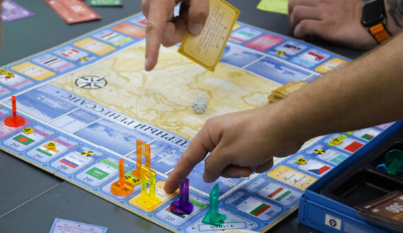 Завершился вечер экономическо-стратегической настольной игрой «Ядерный ренессанс». Игроки примерили на себя роль руководителей корпораций, приобретающих лицензии на строительство атомных электростанций по всему миру. Кроме того, участники боролись за право стать управляющим «Международного центра по обогащению урана» и собственниками урановых месторождений.