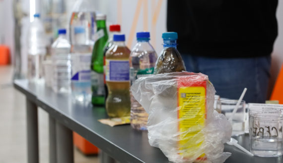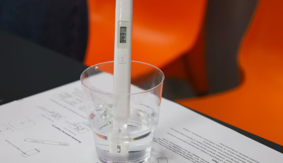 После чего открылась «лаборатория» по замеру качества воды – содержания в ней растворенных твердых веществ, кислотности или щелочности жидкости. Участники провели анализ проб из различных источников: водопроводной воды из разных районов города, талой, минеральной и газированной воды. Для замеров использовались TDS-тестер и тест-полоски pH, также известные как лакмусовая бумага.