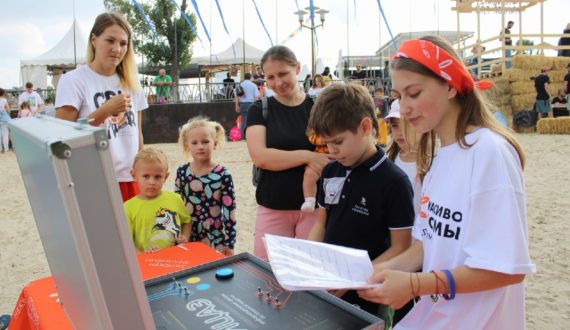 Площадка ИЦАЭ привлекла посетителей разнообразием научных активностей: здесь можно было поиграть в атомные шашки, командную интеллектуальную игру «Адреналин», провести ледокол по океану или приготовить картофельный пирог на гастрономическом кольцебросе.