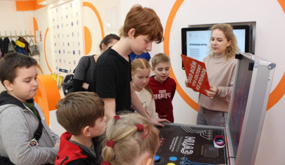 Для учеников столичной гимназии №25 сотрудники центра провели интеллектуальную игру «Красиво атомы сложились». Детям пришлось проявить эрудицию и логику, а также командную работу, чтобы с первой подсказки отгадать загаданные изобретения, которыми пользуется весь мир. Так, ребята узнали, что первый подъёмный аппарат появился ещё до нашей эры благодаря Архимеду, а одним из источников безуглеродной энергетики являются солнечные батареи, которые можно размещать даже на крыше своего дома.