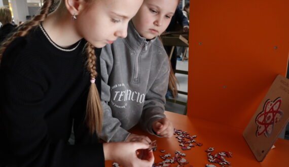 Школьники из Минской области блеснули своей эрудицией и логикой, сыграв в интеллектуальную командную игру «Красиво атомы сложились», темой которой стали изобретения. Отрывки из мультипликационных фильмов, компьютерных игр, песен, а также фото, ребусы и коллажи – всё это послужило подсказками к заданиям игры. Чем раньше команда справлялась с заданием, тем больше баллов зарабатывала. Так, ребята узнали, что атомный ледокол «Арктика» является самым большим и самым мощным в мире. Этот гигант покоряет просторы северных морей, уверенно преодолевая трехметровые стены льда.