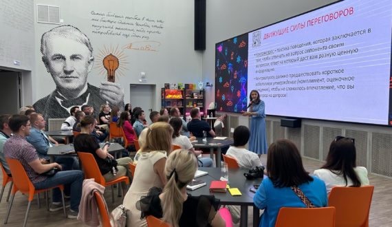 Программа «ИЦАЭ OPEN: коммуникации» началась 13 июня с лекции «Успешные переговоры» Ольги Семенихиной, тренера по риторике, спичрайтера, автора проекта «Мастерская слова». Переговоры – неотъемлемая часть деловых контактов. И их успех зависит не только от хорошего знания предмета обсуждения, но и от владения техникой ведения переговоров. Слушатели узнали, что такое переговоры, как к ним подготовиться, изучили структуру переговорного процесса, затронули тему психологии переговорщика и разобрали стратегию переговоров. На лекции и мастер-классе участники смогли использовать движущую силу переговоров.