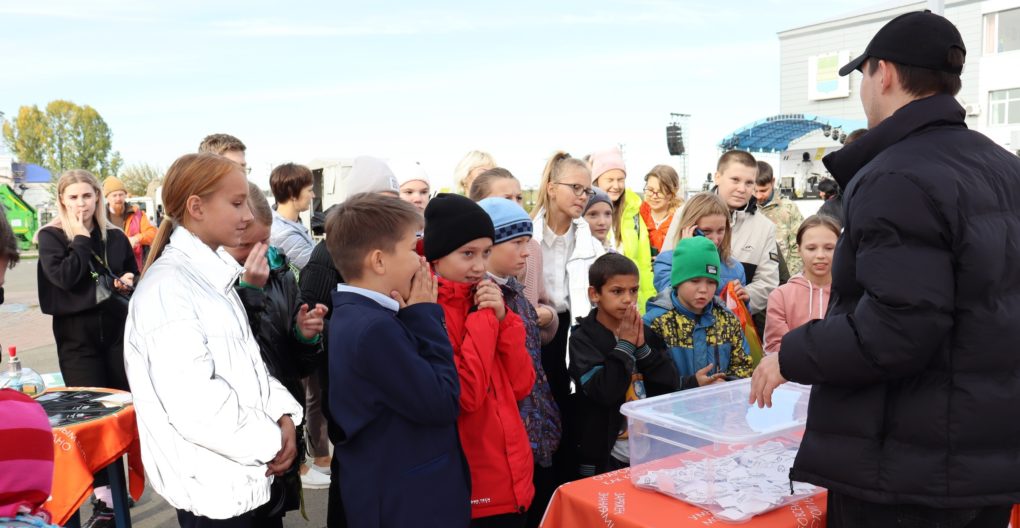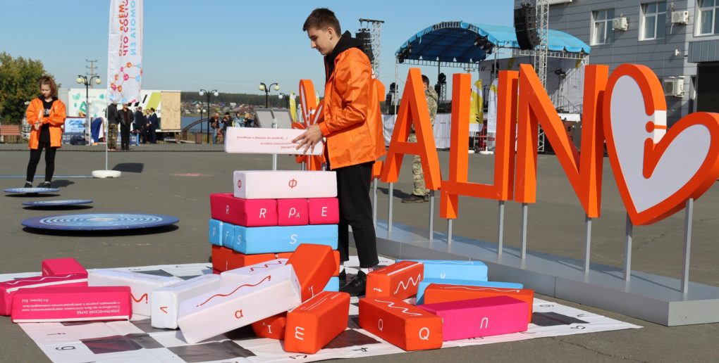 Самые маленькие посетители посмотрели серии «Фиксиков» про экологию и химию, а также покидали гигантский кубик и разобрали большую дженгу на части. Многим взрослым гостям площадки понравилось отгадывать звуки стройки и проверять свою память в игре «Атомный мемо». Ну и, конечно, никто не прошёл мимо Детектора знаний, где были подготовлены 2 блока вопросов по экологии: для самых маленьких – викторина по мультфильмам, где герои совершают полезные дела, защищая природу; для взрослых – серьёзные вопросы про объём электролома на Земле и бактерии, которые разлагают пластик.