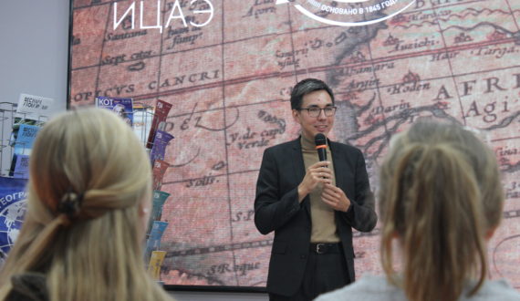 После выступления эксперта руководитель Молодёжного клуба РГО Владимира Сергей Антипин рассказал о предстоящих «Географических солянках», и их новых темах.