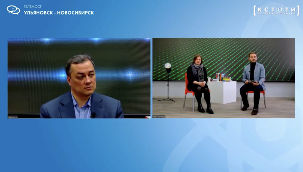 Интересно, что мартовский фестиваль науки «Кстати» одновременно проходит в Новосибирске и Ульяновске. В четверг также состоялся телемост, который соединил города и задал смысловые векторы фестиваля. Темой прямого эфира стало восстановление.