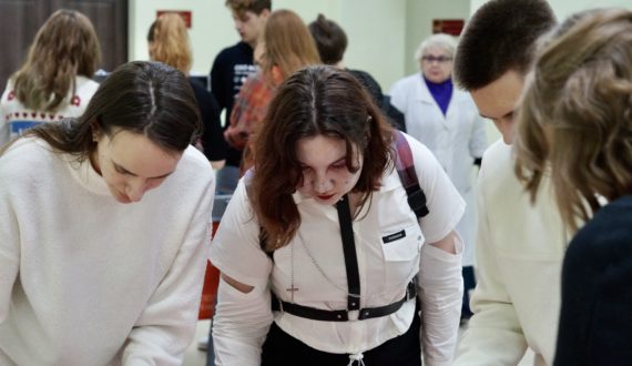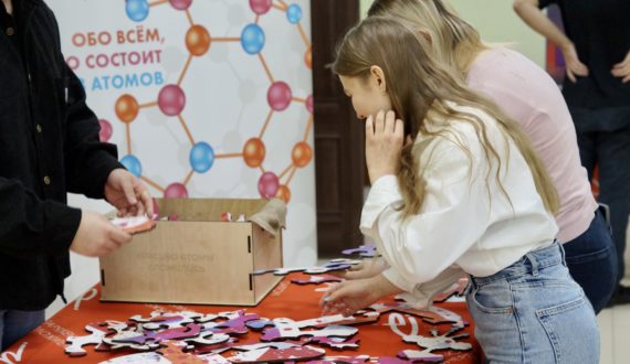 Параллельно с кинопоказом в Главном учебном корпусе ВГУ команда ИЦАЭ Воронежа организовала для участников «Ночного университета» тематическую площадку, где участники масштабного университетского квеста отвечали на вопросы из «Атомного чемоданчика», раскладывали ленту времени из научных открытий, а также собирали пазлы в форме атома.