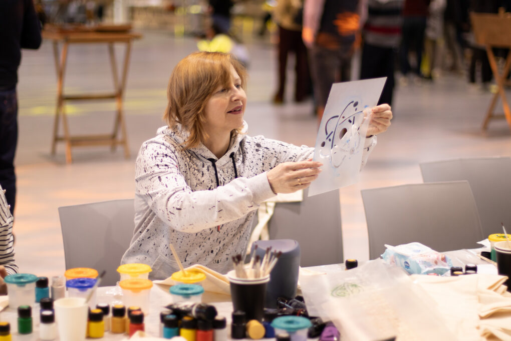 «АтомДвиж» включал пять зон, соответствующих концепции мероприятия. В зоне «Смотрим!» была представлена выставка победителей Международного конкурса фотожурналистики «ASE International Photo Awards». В локации «Слушаем!» прошли викторины «Звуки АЭС» и «Голос ученого», концертные выступления венгерских музыкальных коллективов и арт-студии «Радость». Мастер-классы по созданию шопперов с атомными узорами, росписи матрешек, изготовлению браслетов и магнитов, атомной мозаики состоялись в зоне «Трогаем!», а роспись пряников в форме атомных орбиталей – в локации «Пробуем!». Зона «Собираем!» предназначалась для желающих принять участие в командном сооружении макетов АЭС из крупногабаритного картона и в инженерных играх.