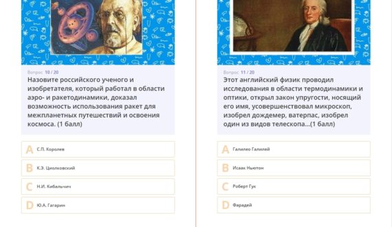 Отвечая на вопросы квиза, семиклассники узнали, что первым возможность использования ракет для межпланетных путешествий и освоения космоса доказал Константин Циолковский, а Роберт Гук, которого современники называли «английским Леонардо да Винчи», проводил исследования в области термодинамики и оптики, открыл закон упругости, усовершенствовал микроскоп, изобрел дождемер, ватерпас и один из видов телескопов.