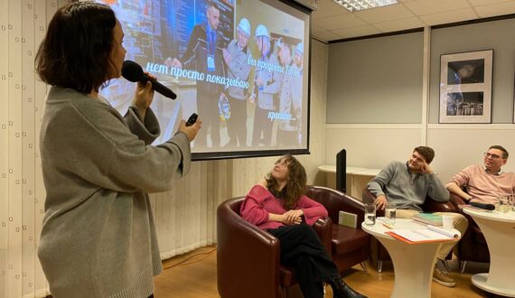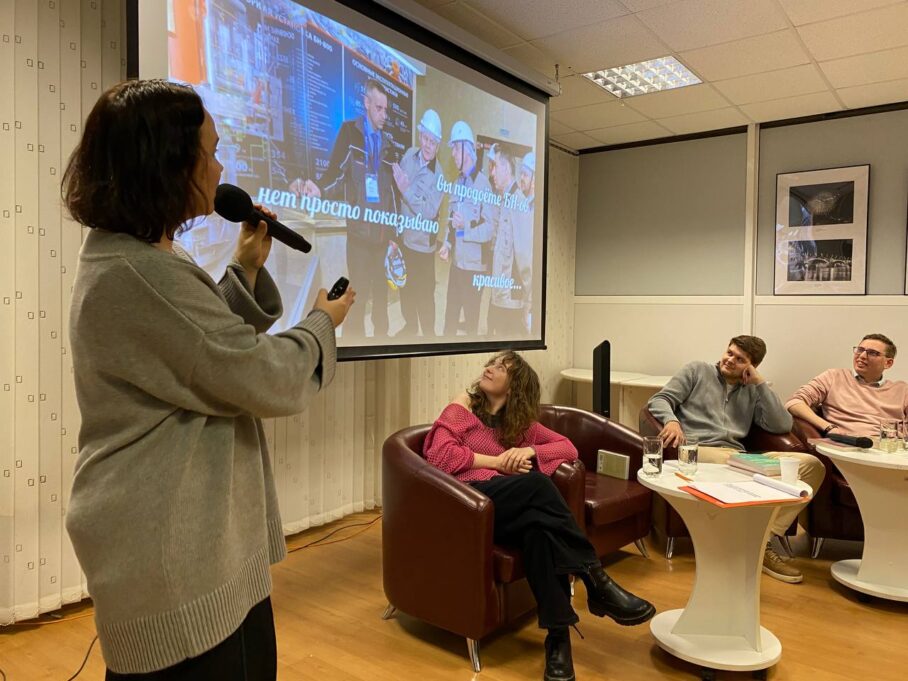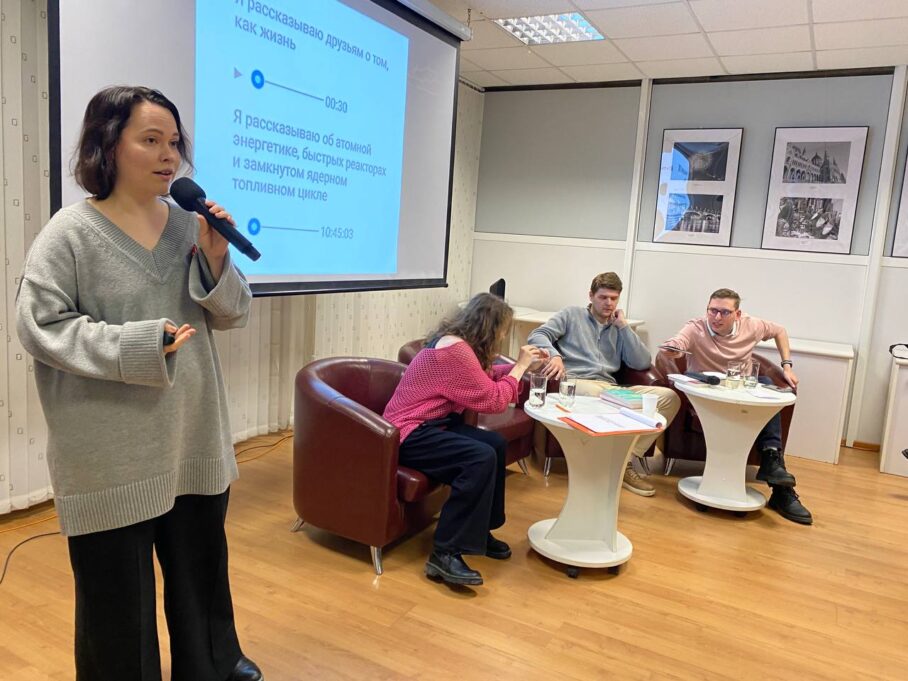 Затем слушатели познакомились с работой пресс-службы Белоярской АЭС через мемы специалиста пресс-службы Александры Золотовой, участницы телевизионной игры «Что? Где? Когда?» в составе команды Константина Рудера, преподавателя УрФУ. В частности, спикер поделилась спецпроектом «АЭС для пацанчиков», который стал победителем Всероссийской премии в сфере медиа и журналистики «Шум». Это сериал про то, что Дима Грязный не понимает, зачем нужна БАЭС и как она работает. Всё меняется, когда Антон Дэвик рассказывает, как делятся атомы и откуда в каждой розетке электрический ток. По словам Александры, оба героя сериала — это не актёры, а реальные сотрудники Белоярской АЭС.