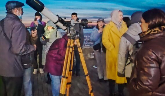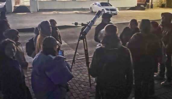 А завершился вечер небольшой импровизированной обсерваторией. Все желающие смогли исследовать небо над Томском с помощью телескопа в компании сотрудников ИЦАЭ Томска и Томского планетария. Погода этим вечером оказалась хорошей, и участникам наблюдений удалось не только увидеть Луну, Юпитер и Марс, но и узнать интересные факты об этих объектах и наблюдении за ними.