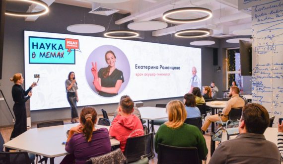 В начале вечера гости познакомились с цифровым форматом «Науки в мемах», посмотрев несколько выпусков. Далее перешли на оффлайн формат, где передали слово спикерам.