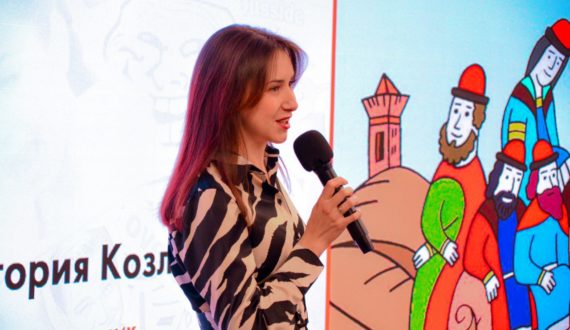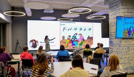 Первой выступила Виктория Козлова, историк, научный сотрудник Музея истории города Обнинска. В начале она показала иллюстрацию к съезду в Любече 1097 года с подписью «Князья» на манер известного ситкома «Друзья». «На съезде князья договорились о прекращении междоусобных войн» — комментирует Виктория смысл этого мема.