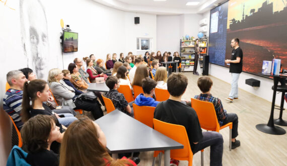 Началась программа арктического дня с семейного мастер-класса. Участники смастерили из бумаги ледоколы, узнали, как устроены атомоходы, и установили в них миниатюрные «ядерные реакторы». Корабль из бумаги отправился в плавание по Северному Ледовитому океану – по маршруту Северного морского пути.