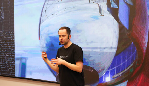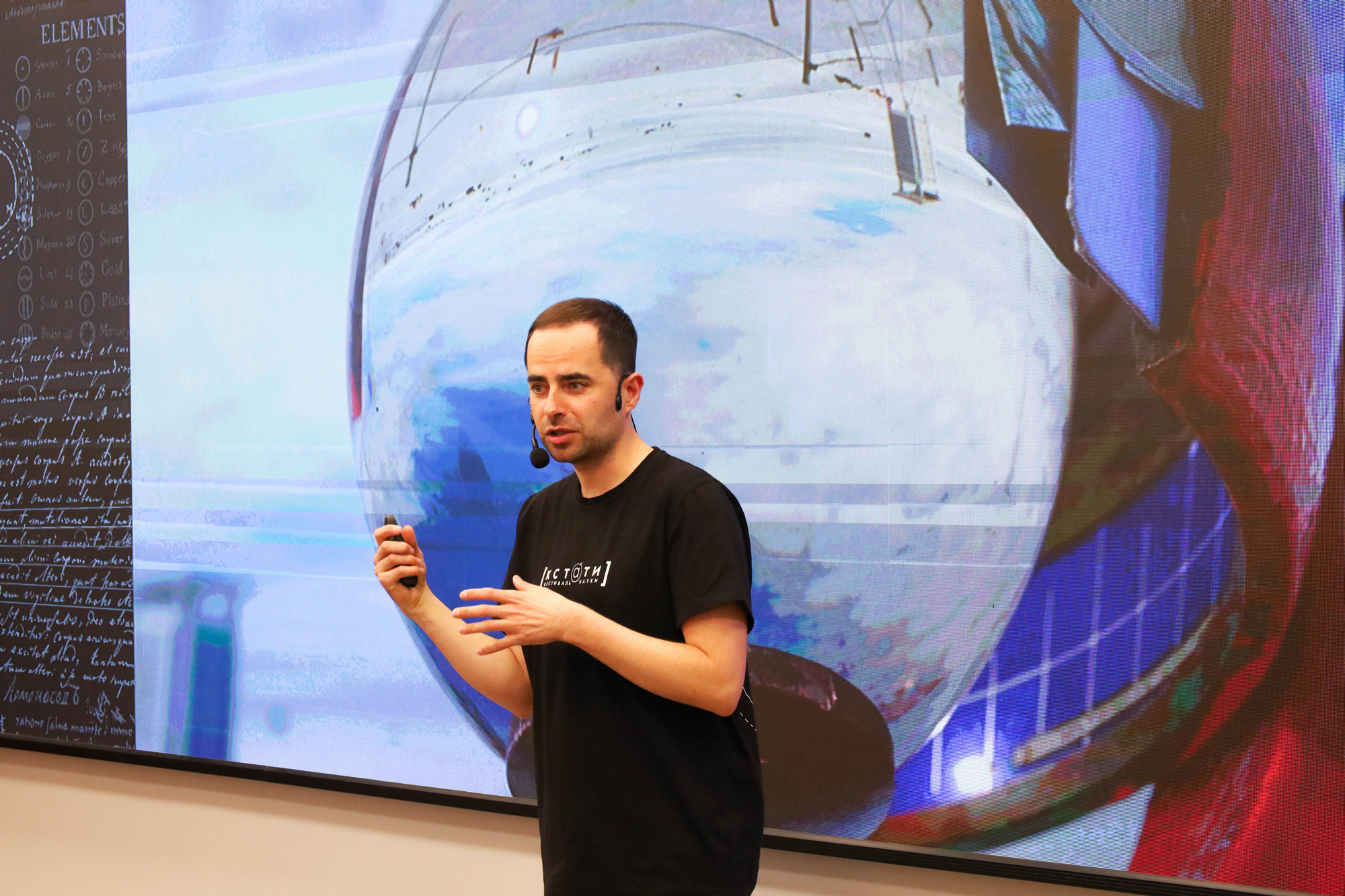 Большая часть выступления была посвящена исследованиям на Арктическом плавучем университете: «Маршруты экспедиций плавучего университета охватывают места с мифическим антуражем – кажется, что это где-то за бескрайними просторами. Это архипелаг Новая Земля с его национальным парком «Русская Арктика», острова Земля Франца-Иосифа – самая северная суша России и нашей планеты вообще, и архипелаг Шпицберген», – начал Максим Червяков.