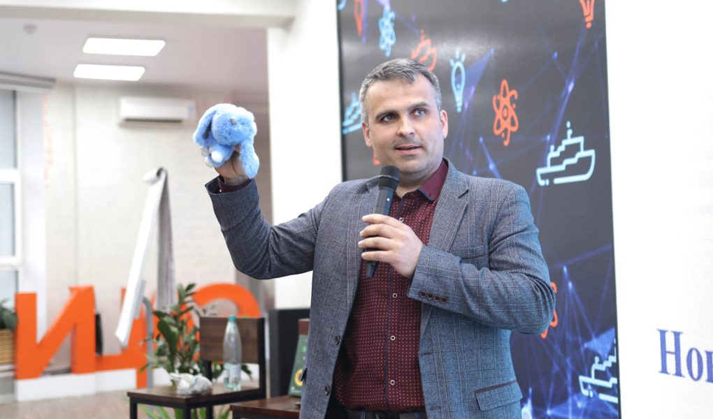 Николай Новаковский начал свою презентацию «Кто такой математик?» с игры. Он показал зрителям две мягкие игрушки и попросил сказать, что же это за звери. Варианты ответов прозвучали самые разные: от зайца с кроликом до слона.