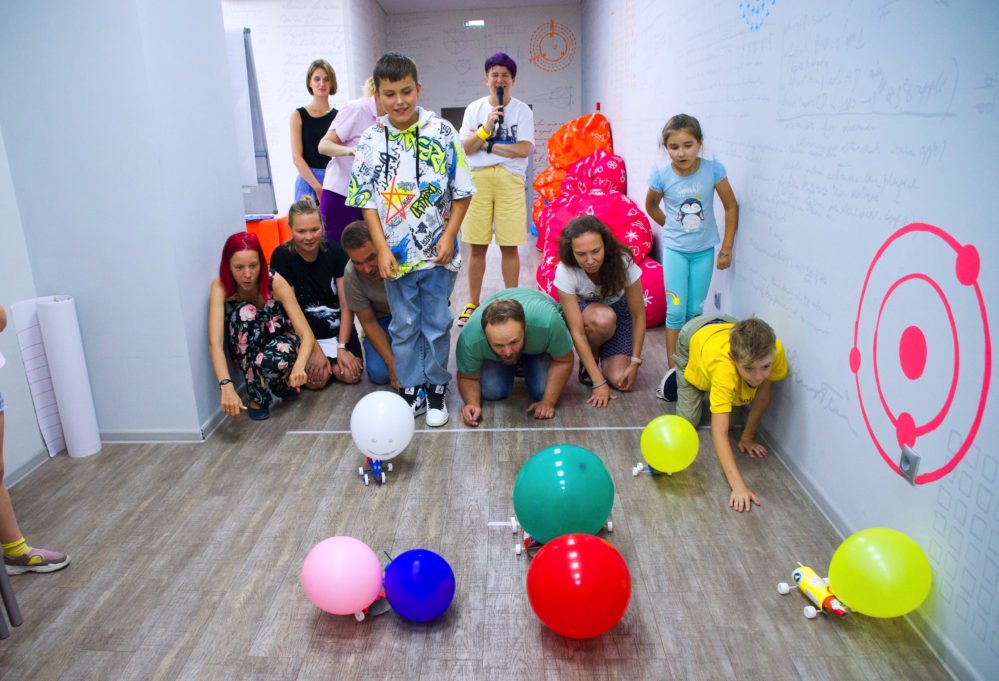 В конце вечера гости приняли участие в мастер-классе «Реактивное движение». Реактивное движение встречается и в природе (его используют кальмары, осьминоги, каракатицы и медузы), и в быту (салют, резиновый шланг с водой). В технике реактивные двигатели применяются на водном транспорте, в воздухоплавании и космонавтике. Из лекции участники узнали основные принципы реактивного движения, а затем восемь команд примерили на себя роль инженеров и разработали уникальные модели шарикомобилей на реактивно тяге. Затем устроили соревнования – чей автомобиль дальше проедет. С большим отрывом победила
