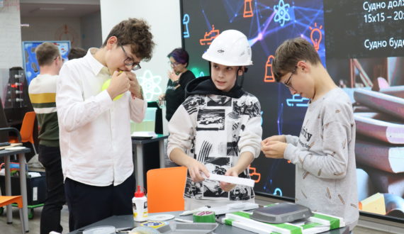 Участники мастер-класса перевоплотились в инженеров-кораблестроителей и попробовали из подручных материалов создать прочные и не тонущие суда. Самой устойчивой оказалась «лодка», выдержавшая груз 4 килограмма. Прототипы других команд затонули после полутора килограммов.