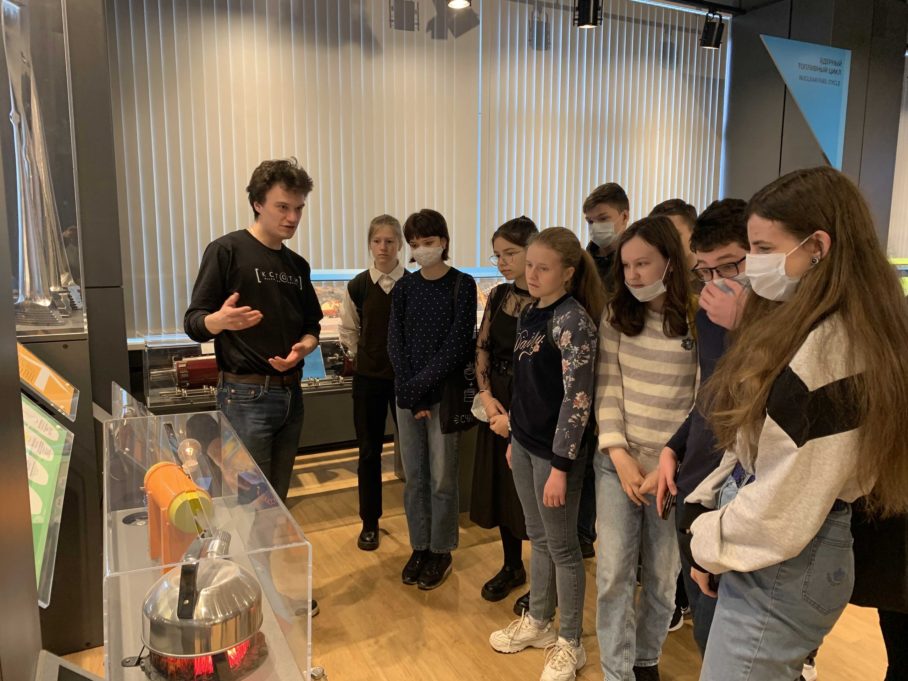 Второй частью занятия было посещение экспозала, где ребята посмотрели на АЭС в разрезе, заглянули внутрь Плавучей атомной электростанции (ПАТЭС), а также увидели современные атомоходы.