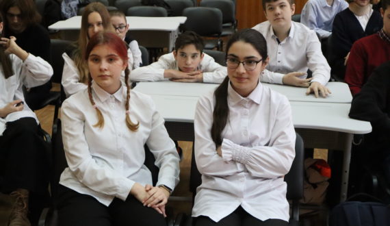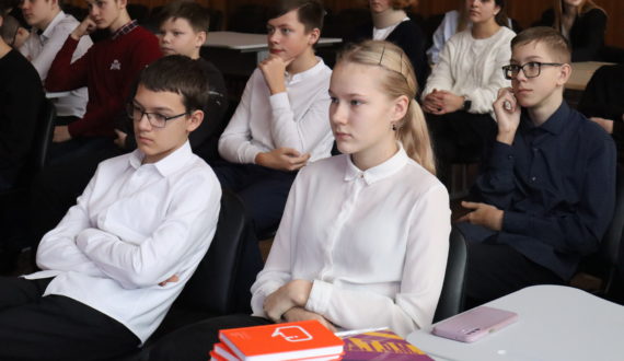 Программа стартовала с ток-шоу «Профпримерка», которое начала Светлана Занько – руководитель Информационного центра по атомной энергии Калининграда. Вместе со школьниками она обсудила вопросы выбора профессионального пути: мы выбираем или за нас выбирают? «Если повезет, мы встречаем на пути человека или нескольких, чьи жизненные истории нас вдохновят и направят на ту самую дорогу в профессии, которая окажется действительно захватывающей», — сказала Светлана. — Прямой разговор с профессионалом своего дела может оказаться шансом сделать удачный выбор самому».