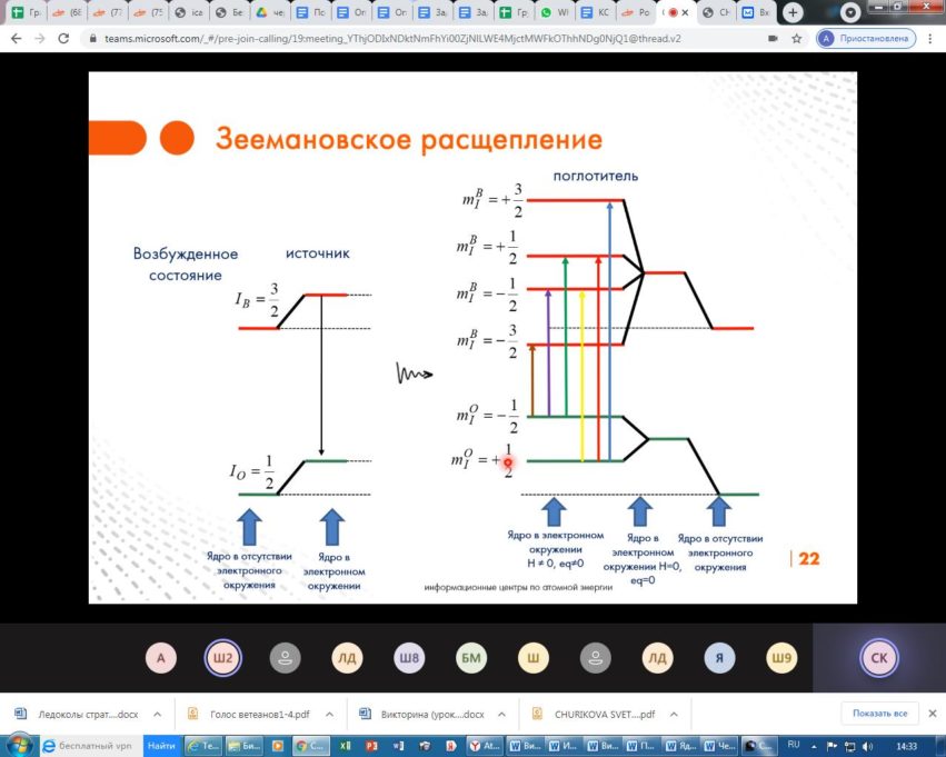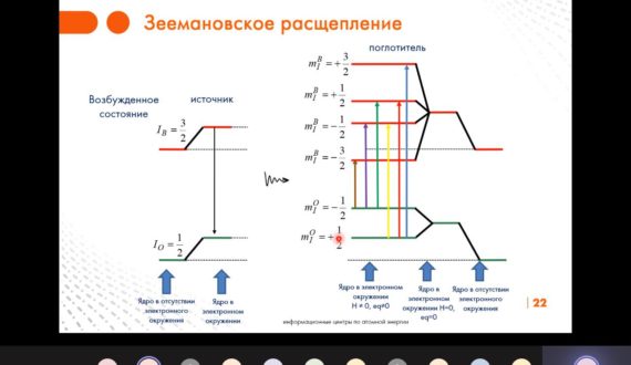 Эксперт пояснил, что это явление возможно только в твёрдых телах, где испускание и поглощение гамма-квантов происходит без отдачи. Кроме того, он показал, как явление эффекта Доплера используется в мессбауэровском спектрометре для изменения энергий испускания источника гамма-излучения. Параметры, получаемые из мессбауэровской спектроскопии, позволяют характеризовать валентные, локальные кристаллические и магнитные состояния ионов, для ядер которых наблюдается ядерный гамма-резонанс.