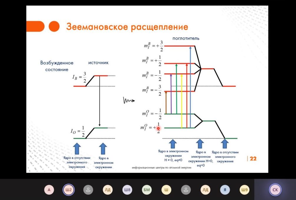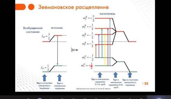 Эксперт пояснил, что это явление возможно только в твёрдых телах, где испускание и поглощение гамма-квантов происходит без отдачи. Кроме того, он показал, как явление эффекта Доплера используется в мессбауэровском спектрометре для изменения энергий испускания источника гамма-излучения. Параметры, получаемые из мессбауэровской спектроскопии, позволяют характеризовать валентные, локальные кристаллические и магнитные состояния ионов, для ядер которых наблюдается ядерный гамма-резонанс.