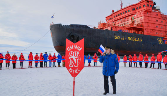Заслуженный полярник Виктор Боярский прямо на льдине прочитал лекцию об истории покорения Арктики. Это мировой рекорд — ​самая массовая, 123 слушателя, лекция на точке Северного полюса.