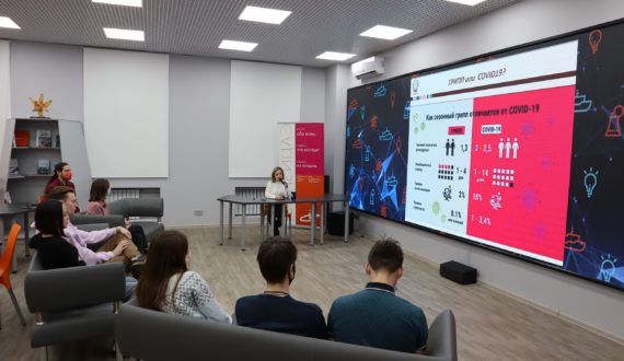 Вечер продолжился научно-популярной лекцией «COVID vs грипп», которую прочитала кандидат медицинских наук, доцент кафедры СибГМУ, врач инфекционист, педиатр, практикующий врач респираторного госпиталя Юлия Ермолаева. Она подробно рассказала о профилактике ОРВИ, в том числе детально остановилась на коронавирусной инфекции, развенчала всевозможные мифы вокруг вакцинации, а также затронула тему осложнений и поствакцинальных реакций.