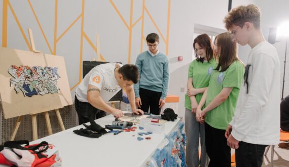 Кроме того, участники попробовали свои силы в увлекательных играх: девушки участвовали в конкурсе «Пластиковый детектив», определяя визуально виды пластика и осваивая правила сортировки, а парни играли в «Что было, что стало», пытаясь угадать, какие предметы изготовлены из переработанных материалов.