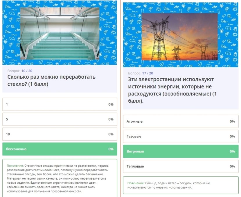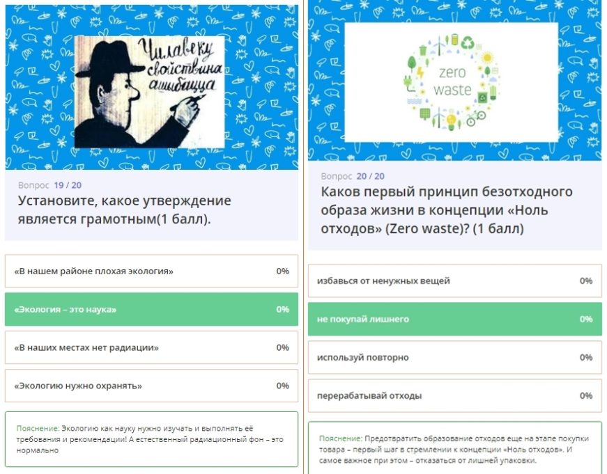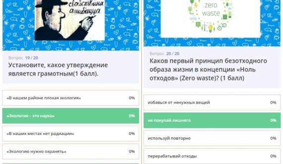 Без труда игроки ответили на вопросы об электростанциях, которые используют не расходуемые источники энергии, об обитателях квартир, которые вызывают аллергические реакции, и о первом принципе безотходного образа жизни в концепции «Ноль отходов».