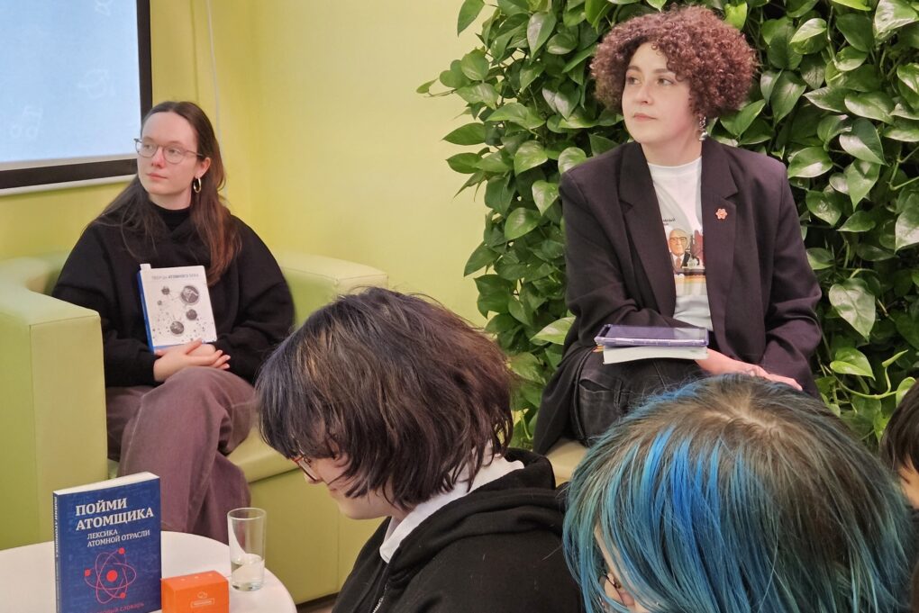Кому, как не специалистам библиотек, знать о литературе всё и уметь правильно подобрать слова? Именно поэтому команда ИЦАЭ Мурманска пригласила сотрудников Зелёной библиотеки, выдав им в качестве домашнего задания атомные книги из собрания центра.