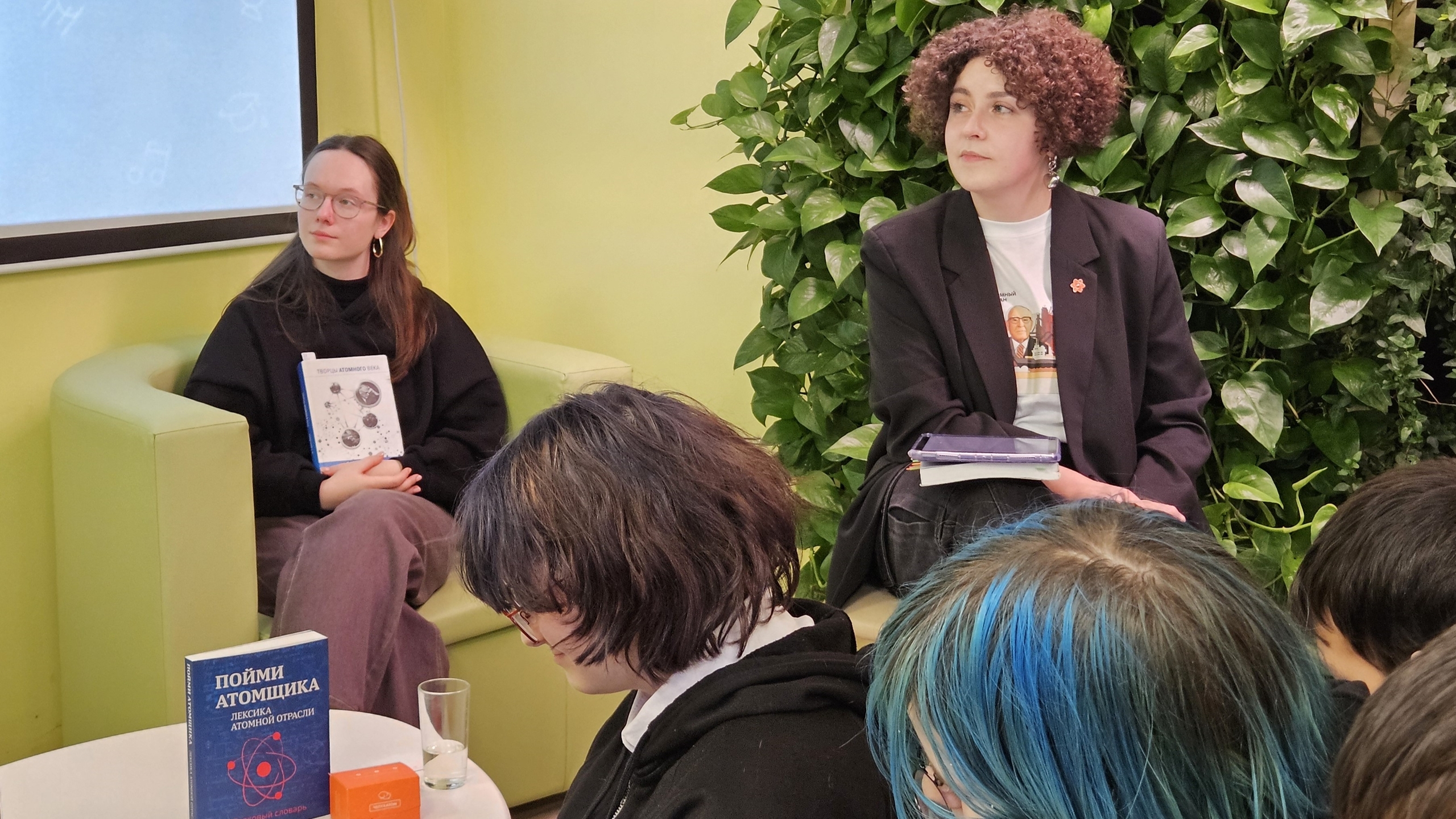 Затем школьники среднего звена приняли участие в ток-шоу «Научные чтения», посвящённом 80-летию атомной промышленности России. Для того, чтобы разобраться в тонкостях атомного жаргона, руководитель ИЦАЭ Мурманска Алина Николаева представила слушателям словарь «Пойми атомщика. Лексика атомной отрасли» авторства кандидата филологических наук Наталии Фельдман. Ребята узнали, что, например, словосочетание «жёлтый кек» не имеет ничего общего с очень смешными картинками в интернете, а имеет англоязычное происхождение, и что у реактора могут быть юбка и тюбетейка.