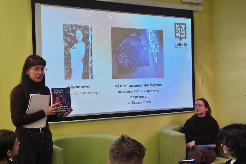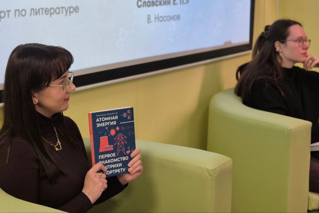 Библиотекарь Елизавета Парная поделилась впечатлениями от чтения научно-популярной книги Александра Колдобского «Атомная энергия. Первое знакомство. Штрихи к портрету». «Автор в этой книге не ведёт разговор сам с собой, он собрал вопросы студентов с лекций, которые он читал в НИЯУ МИФИ, с просветительских встреч в ИЦАЭ с молодёжью и попытался дать на них понятные ответы. По словам самого автора, эта книга не учебник, это база, необходимая для понимания того, что такое энергия в целом и атомная энергия в частности» — пояснила Елизавета. В диалоге со слушателями она поделилась советами, как осознанно относиться к своему существованию и не тратить впустую ресурсы, особенно электроэнергию, которую не так просто выработать, несмотря на тенденции развития мировой атомной энергетики.