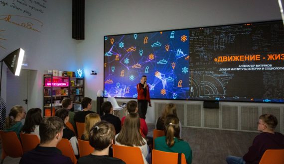 Вечером для жителей города Александр Митряков прочитал лекцию «Движение – жизнь». «Движение – это не про тело, а про социум», — с таких слов начал эксперт.