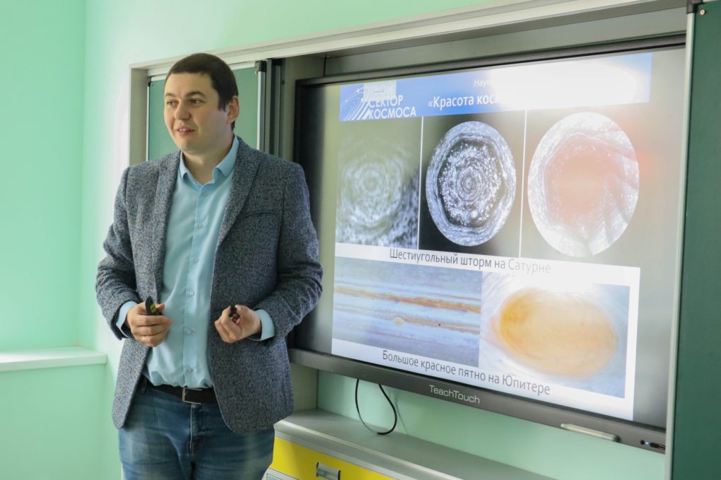 В завершение своего визита в Ульяновскую область инженер посетил гимназию №1 с лекцией «Красота космоса и космонавтики». Спикер использовал видео-отрывки запусков и посадок космических аппаратов, показал заход Солнца на Марсе.