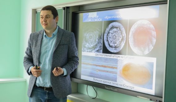 Визит Александра начался с лекции, посвящённой основам космической техники, которая состоялась в гимназии №33. «Ракета на 94% процента состоит из топлива. Это большие бочки из алюминия толщиной 2-3 мм. Ракеты нужны для того, чтобы доставлять на орбиту Земли спутники, а на другие планеты – зонды и марсоходы. В ракете-носителе есть специальное место, откуда на орбиту в заключительной фазе вылетает множество маленьких спутников», — пояснил Александр.