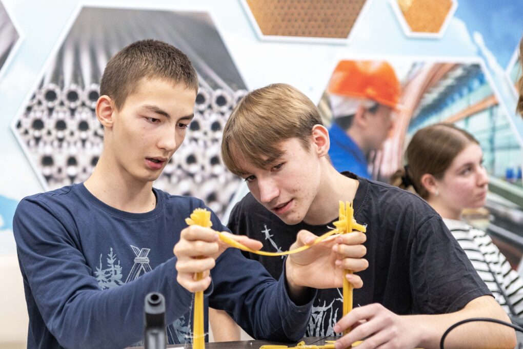 Вечер завершился мастер-классом «Макаронный сопромат», в котором приняли участие глазовские школьники и их родители. Они объединились в небольшие команды, чтобы построить надёжные, устойчивые и красивые мосты из макарон и клея. Для этого в начале мастер-класса участники прослушали вводный курс «Сопромат для чайников или как вырастить юного изобретателя», познакомились с основными понятиями сопромата: прочностью, жёсткостью и устойчивостью – а также узнали, что сопротивление материалов зависит от связей в их кристаллической решётке.